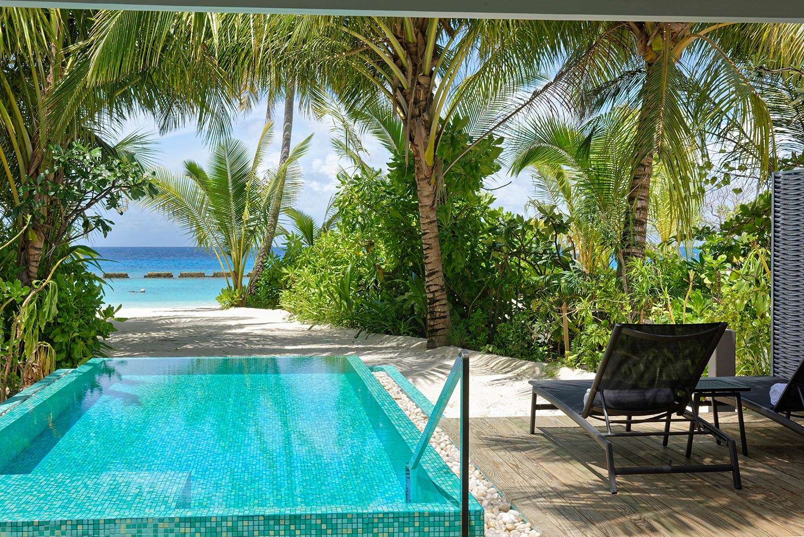 With its intimate small island charm, lush vegetation surrounded by powder-white soft sand, and a house reef that a myriad of tropical fish call home, Outrigger Maldives Maafushivaru Resort is just over 350-metres in length and can be walked in just 10-minutes and a bit!