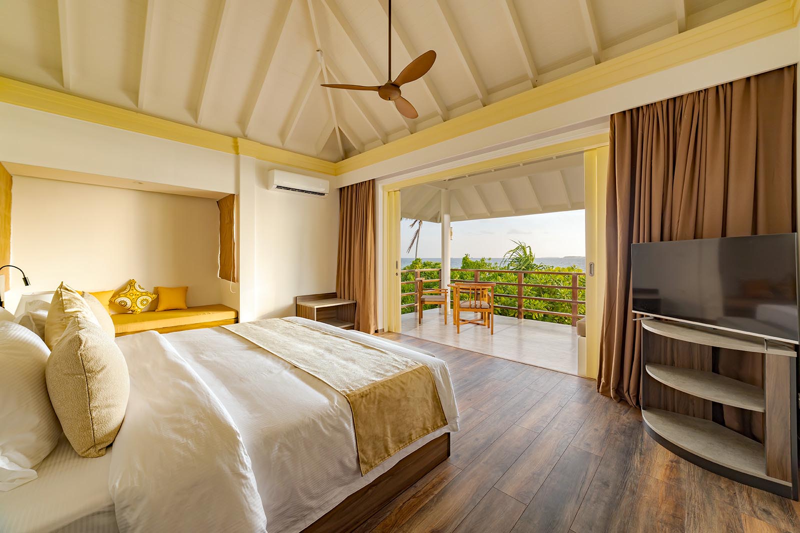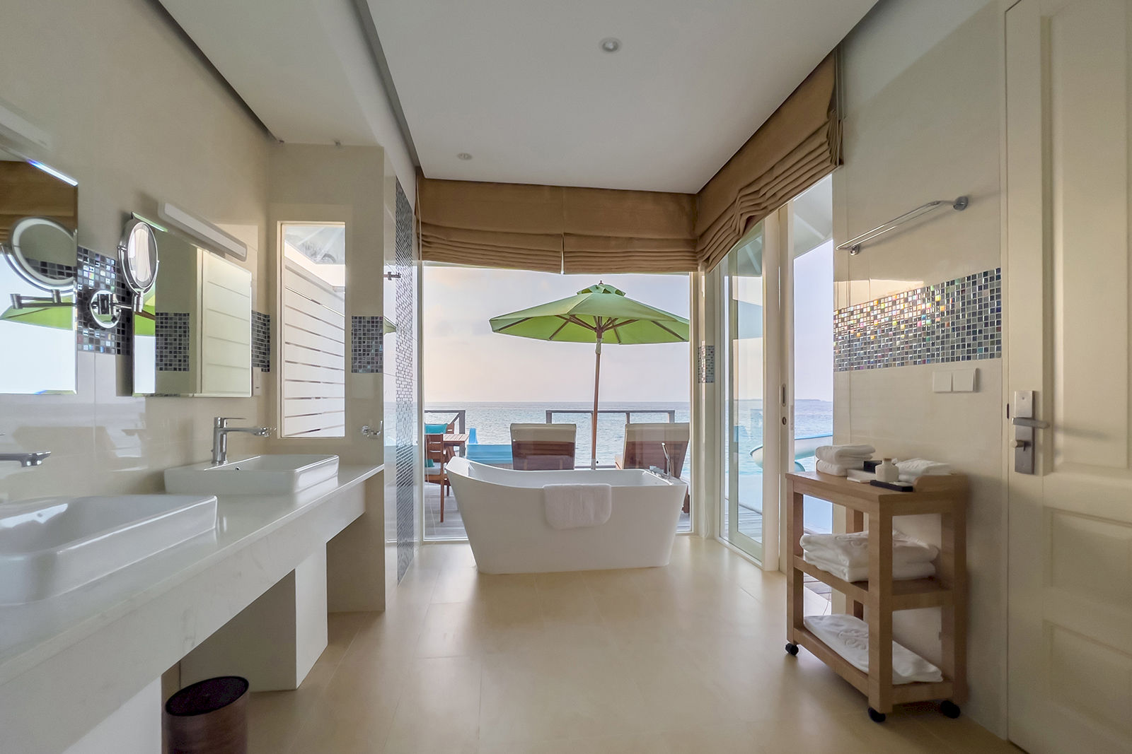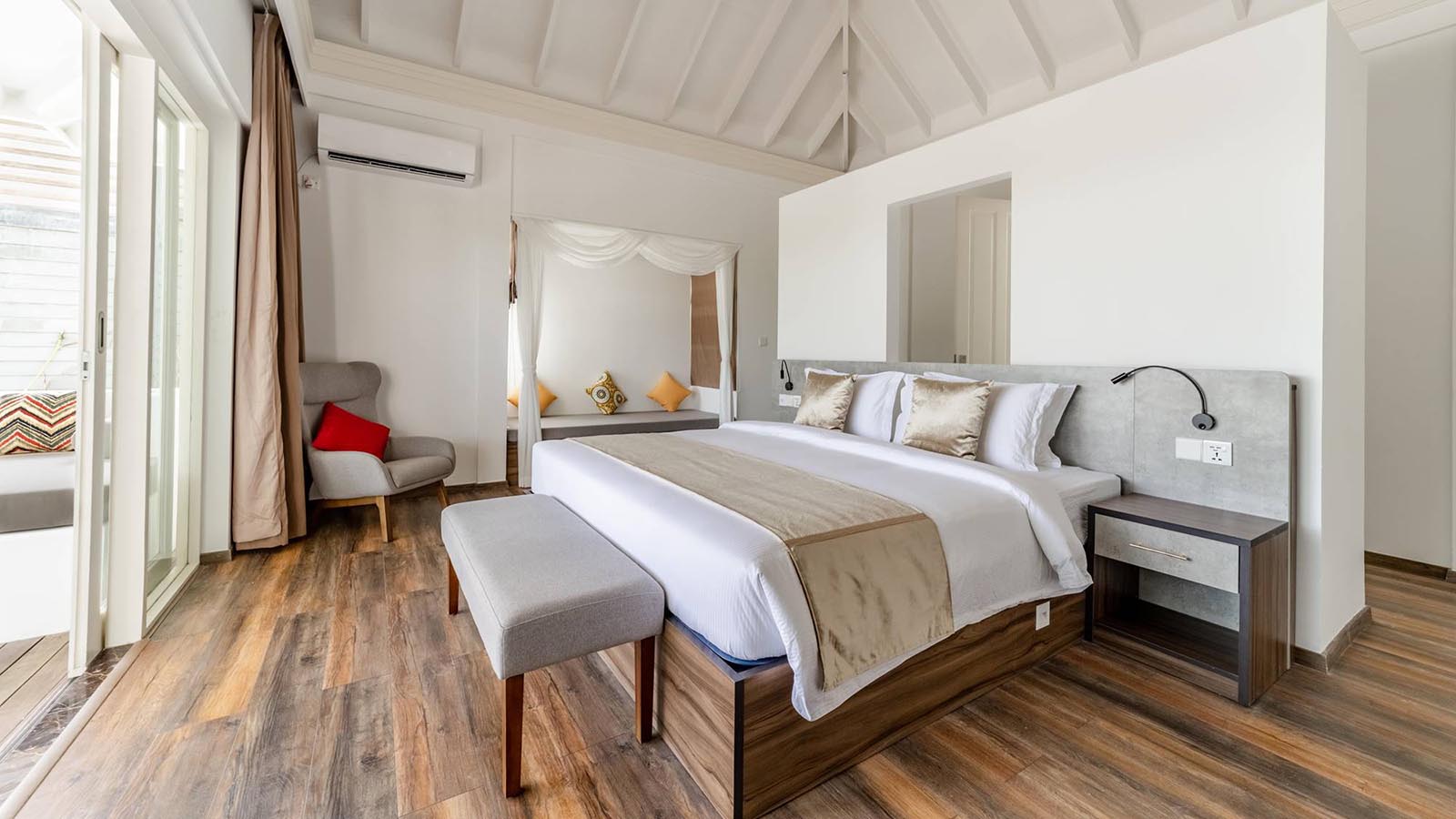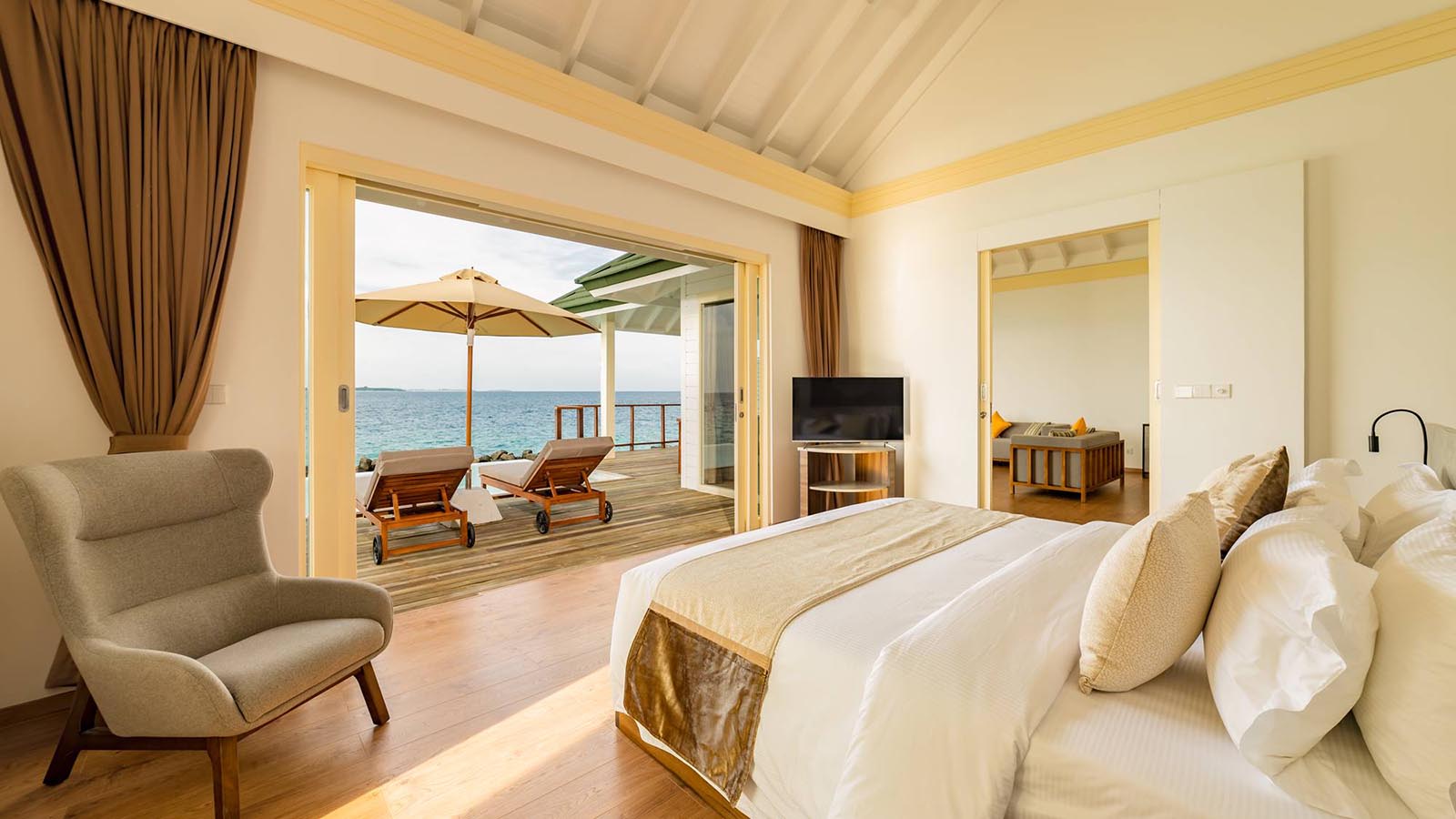 Ideal for larger families or groups of friends, this 307 sqm villa offers space, comfort, and endless ocean views. Enjoy a private freshwater pool, your own slide into the lagoon, a spacious terrace, three master bedrooms, and three bathrooms with indoor and outdoor showers. Complete with a mini bar, Wi-Fi, and direct ocean access, it is the perfect island escape for shared fun and relaxation.