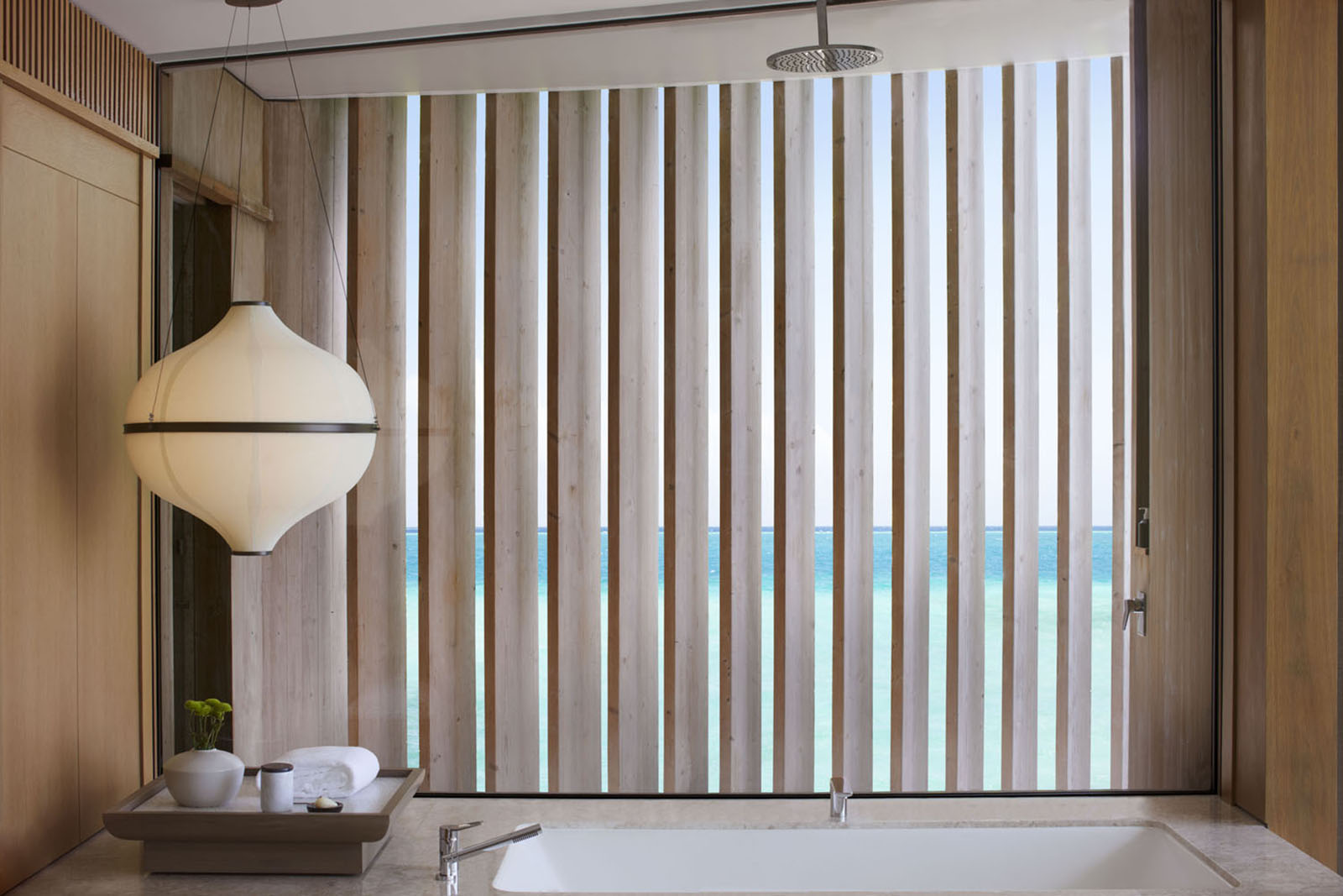 Oceanfront, Panoramic → Oversized King bed → Bathtub and separate showers → Separate indoor and outdoor rainforest showers → Full marble bathroom → Rainforest Shower Head → Oversized soaking tub →